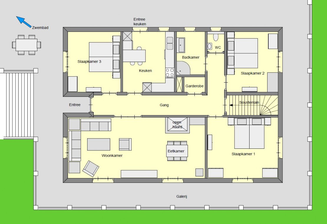 tafel 100x200cm 6 tuinstoelen zonwering barbeque | afmeting circa 3,7 x 7m onverwarmd afdekhoes zwembad 4 ligstoelen | huisdieren zijn niet toegestaan | internet/Wifi via glasvezel. televisie met Nederlands zenderpakket. chromecast om series etc. vanaf eigen device te streamen. | |